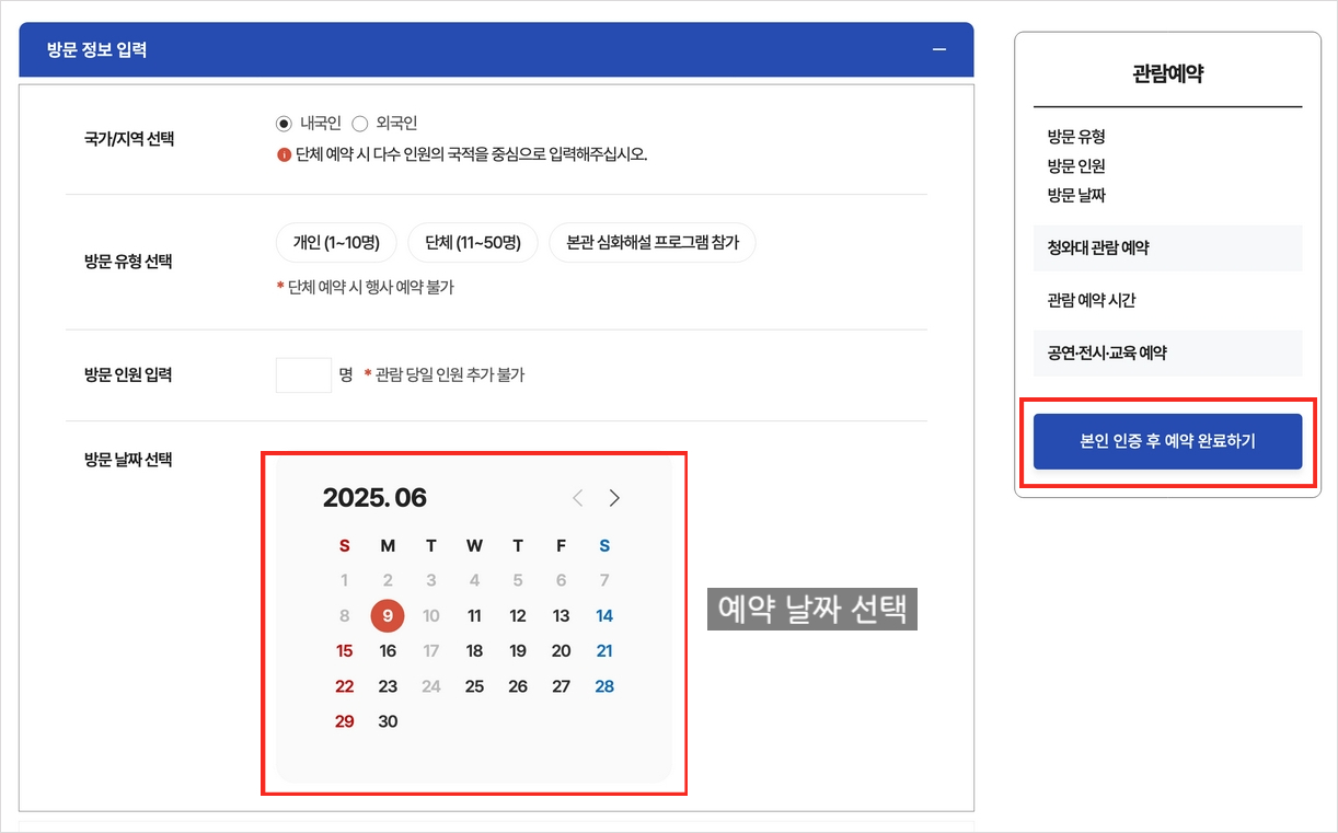📌 청와대 관람 신청 예약 시 유의사항